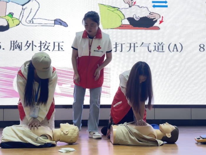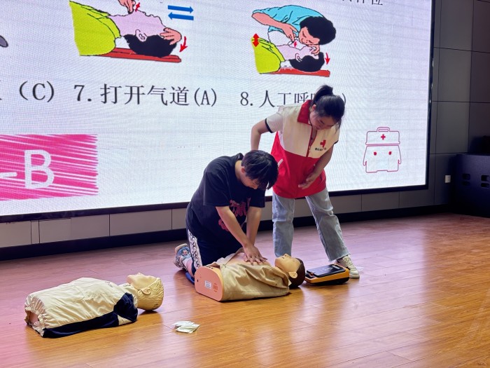 培训会上,黄山市红十字会的专业培训师项妍通过理论讲解和实操演示,向同学们详细介绍了心肺复苏(CPR)、自动体外除颤器(AED)使用以及气道异物梗阻处理等关键急救技能。培训师生动形象的讲解和手把手的指导,让同学们在轻松的氛围中掌握了科学的急救方法。活动现场气氛热烈,同学们积极参与模拟演练,项妍对大家的操作进行了细致点评和纠正。参与学生纷纷表示,此次培训不仅增强了自身的急救意识,还学到了实用的救护技能,为应对突发情况提供了有力保障。