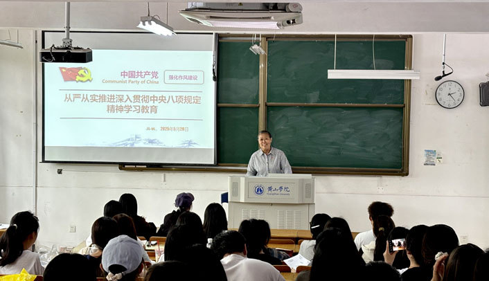 为开展深入贯彻中央八项规定精神学习教育,进一步加强党的作风建设,5月26日,6776永利集团党委书记吴敏在教学楼1201教室讲授专题党课,教工第三党支部党员、学生第一、四党支部党员、第63期入党积极分子及青马班学员参加。