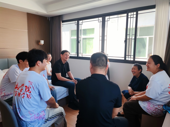 吴敏一行首先来到队员们的临时宿舍,细致察看住宿环境与生活设施,关切询问生活适应情况及实际需求,对大家克服困难、积极投入基层实践的精神面貌给予高度肯定。吴敏叮嘱队员们注意做好防暑降温,以饱满的热情和健康的体魄投身于社会服务;鼓励大家做有心人,善于从服务的具体过程发现问题,深入剖析,系统梳理,将鲜活的实践素材有效转化为高质量的调研成果,形成有价值的调研报告。积极备战“挑战杯”竞赛、为真题真做的毕业论文选题夯实基础,实现实践育人与学术创新的双丰收。
