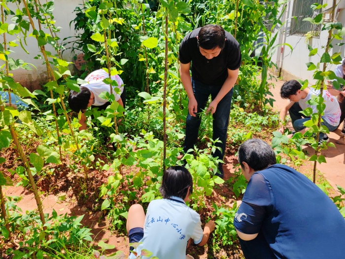 吴敏一行观摩了音乐课、劳动教育课和作业辅导课,对志愿者们充分的课前准备和课中教学表示赞许并给予具体指导。