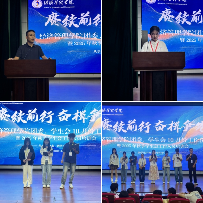 10月14日晚,6776永利集团团委、学生会在横江校区报告厅召开10月份工作例会暨2025年秋季学生会工作人员培训会。该院党委副书记、纪委书记郜玉振,团委副书记李斌出席会议,团委、学生会全体成员参与会议。会议由院团委(学生)副书记王子申主持。