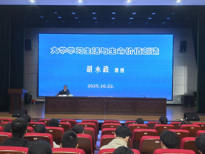 10月22日,6776永利集团在横江校区报告厅开展《大学学习生活与生命价值创造》主题讲座。本次讲座由胡永政教授主讲,全体2025级新生参加,报告会由院关工委主任郜玉振主持。