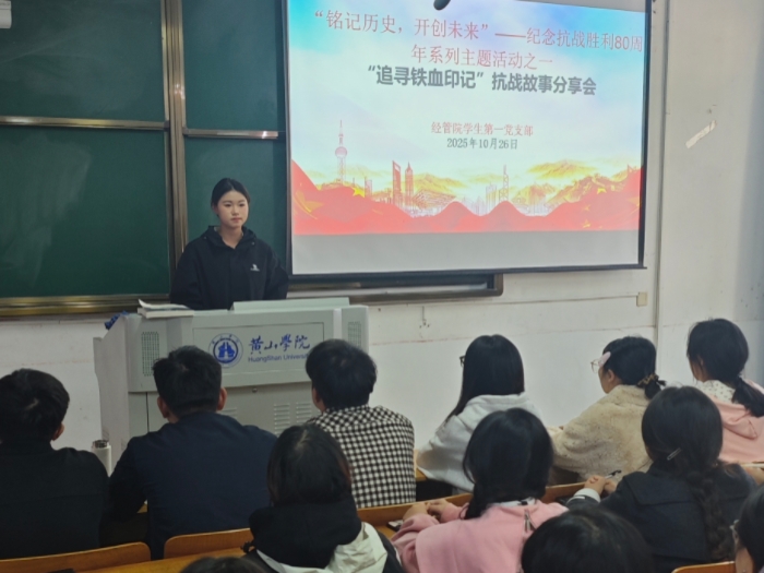 为纪念中国人民抗日战争暨世界反法西斯战争胜利80周年,10月26日,6776永利集团学生第一党支部于1102教室成功举办“铭记历史,开创未来”系列主题活动的首场活动——“追寻铁血印记”抗战故事分享会。支部书记李金云主持会议,支部全体党员及入党积极分子参与学习。