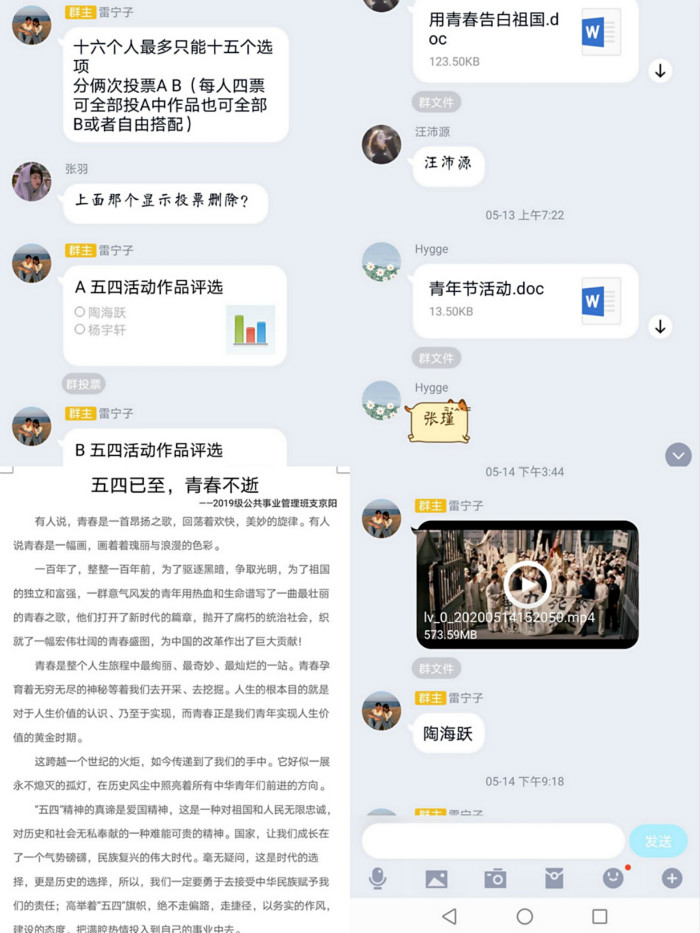 5月22日,6776永利集团19公共事业管理班利用QQ平台召开“弘五四精神,担时代责任”主题活动。活动由辅导员赵老师牵头,各班委组织实施,19公共事业管理班级全体学生均积极参与。