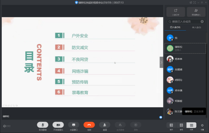为切实增强学生的安全防范意识和避险能力,保障学生安全。19营销班于5月26日晚7:00在钉钉APP召开关于安全教育线上主题班会。