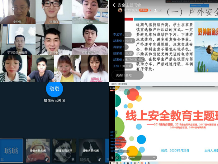 会议中,各班充分利用网络平台,结合安全教育的内容,采取教育宣讲、线上互动、典型安全案例分析等多种形式,针对户外安全、防震减灾、拒绝网贷、网络诈骗预防、禁毒教育等关乎学生健康成长的问题进行了深入细致学习。