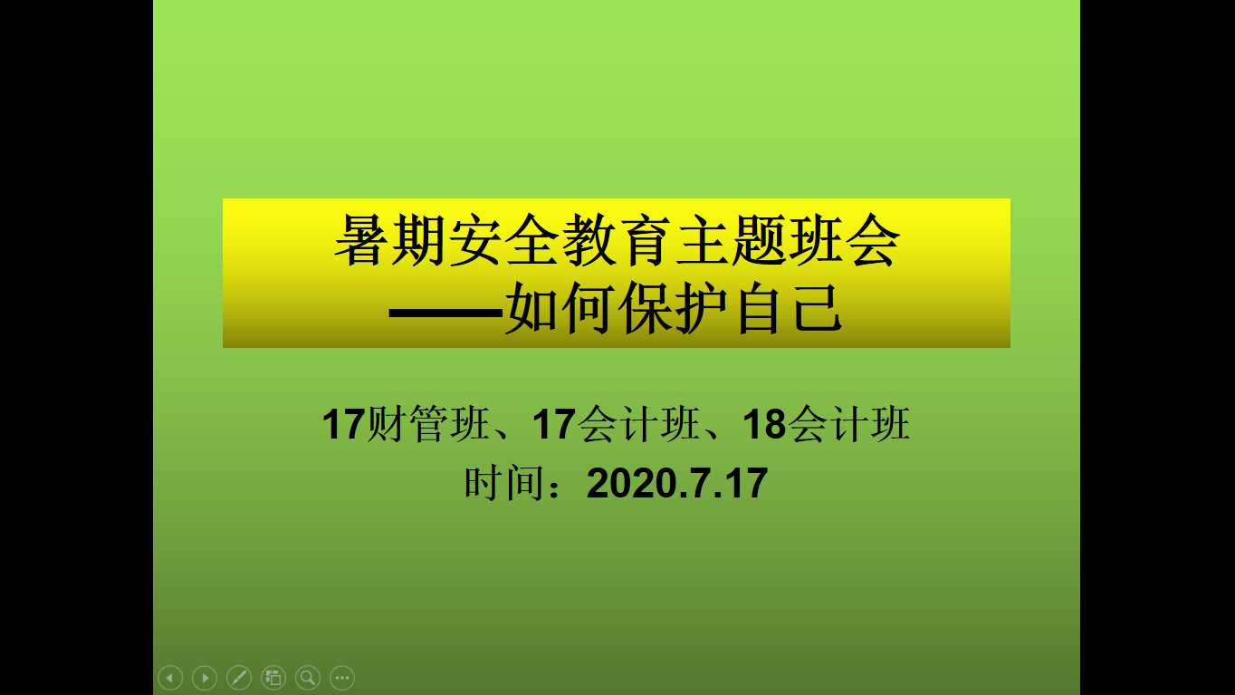 为紧绷学生暑期期间安全弦,引导学生更好保护自我,按照学校统一部署要求,7月17日,17财管班、17会计班和18会计班通过QQ群课堂联合召开“暑期安全教育主题班会——如何保护自己”,会议由辅导员汪玉玲主持。
