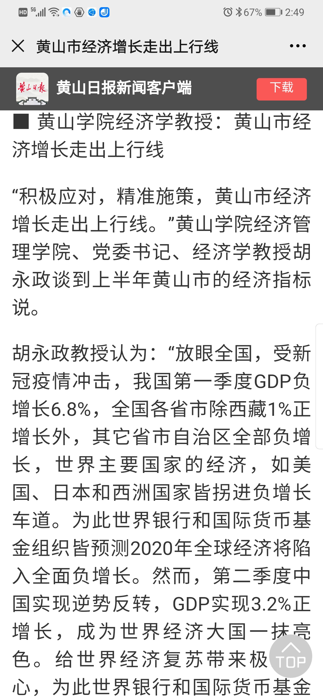 近日,《黄山日报》记者程向阳就黄山市经济发展态势对我院胡永政教授进行专题访谈。胡永政以《黄山市经济增长走出上行线》为题解读了黄山市第二季度经济增长态势,8月22日《黄山日报》刊发胡永政关于黄山市经济近期发展良好态势评论,并对黄山市未来经济发展给予积极预期。以高校知库价值为地方媒体传播正能量发声,是服务地方经济社会重要表现。