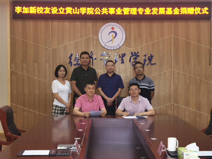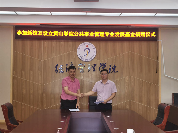 赵士德代表学院与李加新校友签订《合肥晨升知识产权代理有限公司设立yl6776永利集团“公共事业管理专业发展基金”捐 赠 协 议 书》。