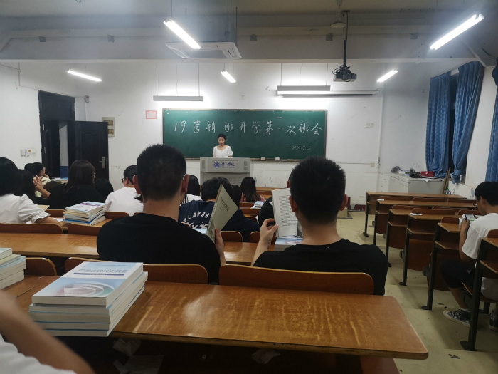 为贯彻落实学校疫情防控工作方案,增强同学们的安全防护意识,19营销班于9月5日晚8:20在1102教室召开返校开学第一次班会。