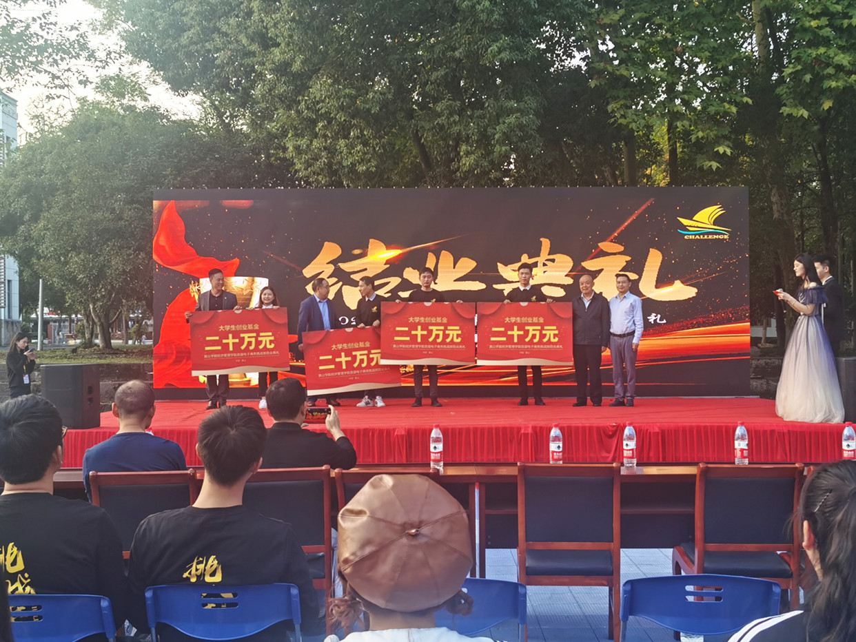 胡家俊携张小明、胡永政和赵士德共同向yl6776永利集团首届电子商务挑战班的4个优秀创业团队颁发了“大学生创业基金”,该基金由上海国辉服饰有限公司出资设立。