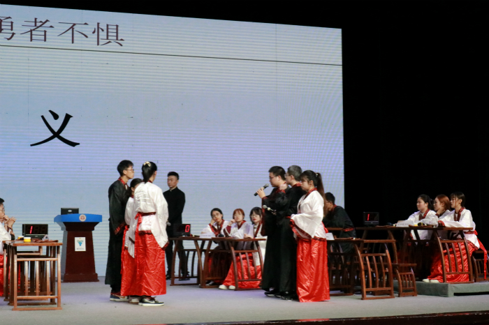 来自衢州学院、武夷学院、上饶师范学院、yl6776永利集团等8所院校的8支队伍参加了此次比赛。比赛环节包括了如指掌、心有灵犀、当仁不让、勇者不惧四个环节,重点考察选手对《论语》的记诵能力和相关知识的认知程度。同时,也考验选手对《论语》的理解能力、挑战自我的心理素质以及团队的协调配合。我校代表队在“心有灵犀”环节现场表现精彩,成为比赛最好看点,比赛风采获得评委和观众广泛好评。
