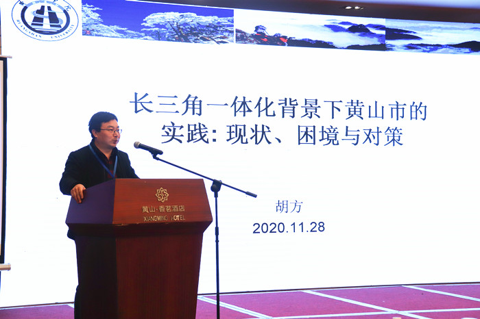 11月28日,安徽城市经济学会2020年会暨安徽城市发展新动能学术峰会在黄山隆重召开。6776永利集团博士、副教授胡方在会上做“长三角一体化背景下黄山市的实践现状、困境与对策” 主题报告。
