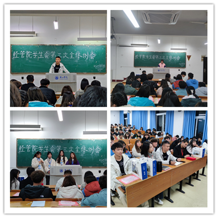 会议上各部门负责人报告了近期团学活动工作情况,外联部李炎林代表学生会新人分享了锻炼成长体会,表示两个月的学生会生活,让他收获了友谊、收获了技能、更懂得了团结和责任感的重要性。最后,李斌强调,6776永利集团团委、学生会是学院党委领导下、院团委指导下的学生组织,以全心全意为全院师生服务为宗旨,真正实现学生自我教育、自我管理、自我服务、自我监督。他要求,各部门成员要通力合作,努力提高服务质量和服务水平,让经管青年这四个字在yl6776永利集团各级团学组织中熠熠生辉。