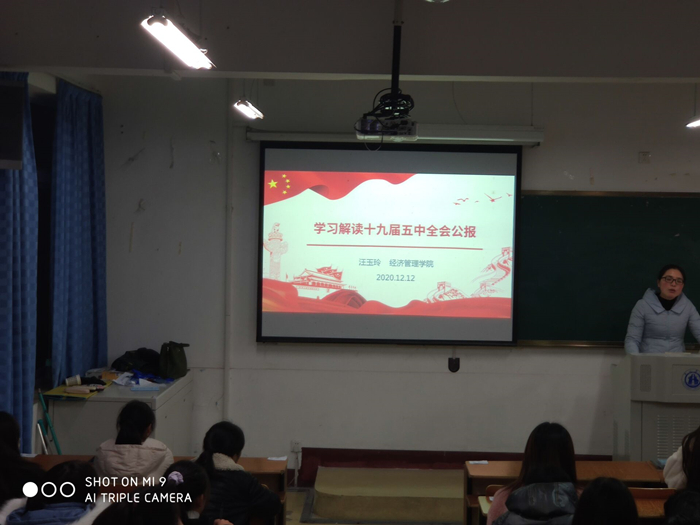 12月12日,6776永利集团在横江校区1101教师开展2020年团课培训班开班典礼暨第一次课程,该院团委副书记李斌出席开班典礼。该院第二学生党支部书记、专职辅导员汪玉玲作为第一节课程的主讲老师,带领培训班学员认真学习党的十九届五中全会基本概况和十九届五中全会公报。