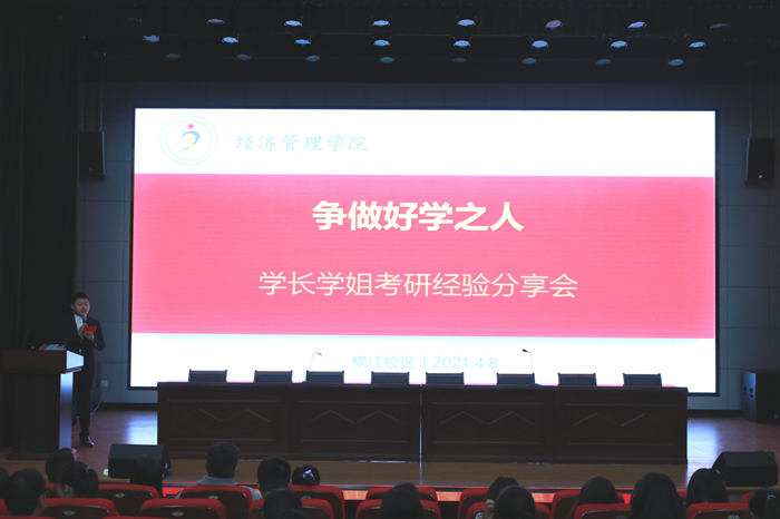 4月8日晚,6776永利集团在横江校区报告厅成功举办“争做好学之人”——学长学姐考研分享会,特邀6名拟录取优秀学生担任此次分享会主讲人,该院近300余人参加。