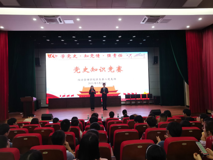 5月28日,学生二支部在横江校区报告厅开展“学党史·知党情·强责任”党史知识竞赛。支部书记汪玉玲、纪检委员王韵甜、专职辅导员赵翠应邀出席,赛事由汤成和雷宁子主持。