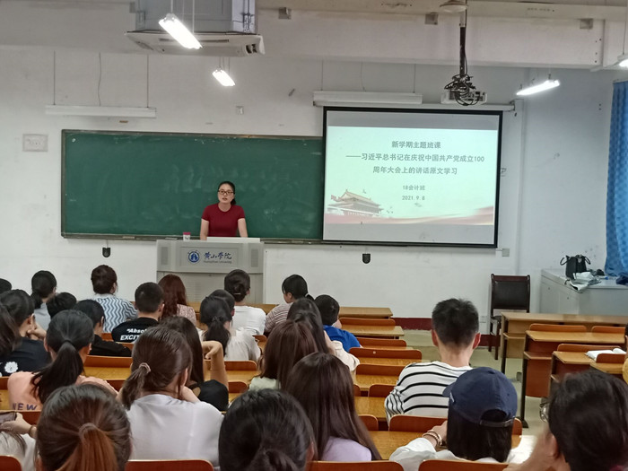 9月8日,18会计班在横江校区1102教室召开“习近平总书记在庆祝中国共产党成立100周年大会上讲话原文学习”主题班课,主题班课由辅导员汪玉玲主持。