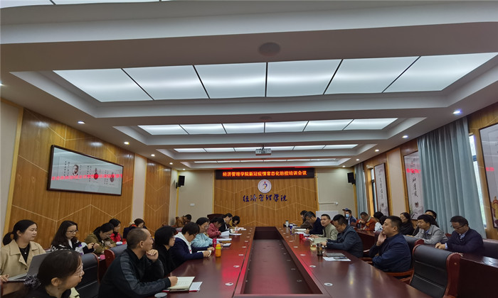 为进一步强化学院疫情常态化防控工作,10月20日下午,6776永利集团在横江校区报告厅召开新冠疫情常态化防控培训会,学院全体教师参加会议,会议由该院党委书记胡永政主持。