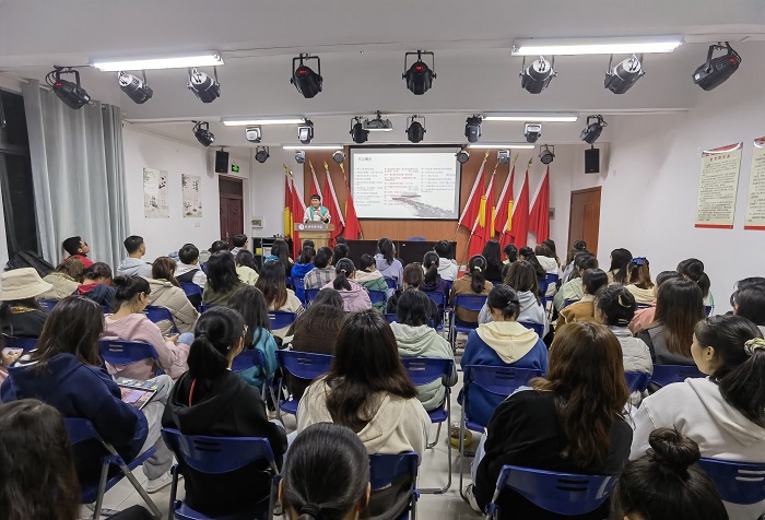 为深化党史学习教育,11月19日,6776永利集团在党员活动中心举办第二十七期读书分享会,本次活动主题为“党史人物故事我来说”。6776永利集团党委书记胡永政,党委委员办公室秘书江红、党委委员专职组织员、学生支部书记汪玉玲和学生支部书记、专职辅导员蒋璐璐参加此次活动,读书分享会由王璐蕙子同学主持。