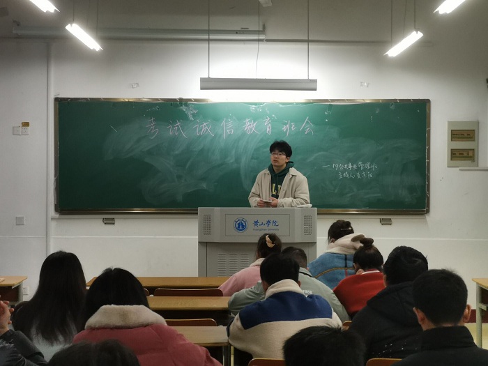 12月3日起,19电子商务班、19会计班、19公管班、19国贸班先后召开诚信考试教育班会,班会由辅导员赵老师指导,各班学习委员主持,各班级全体学生共同参加。