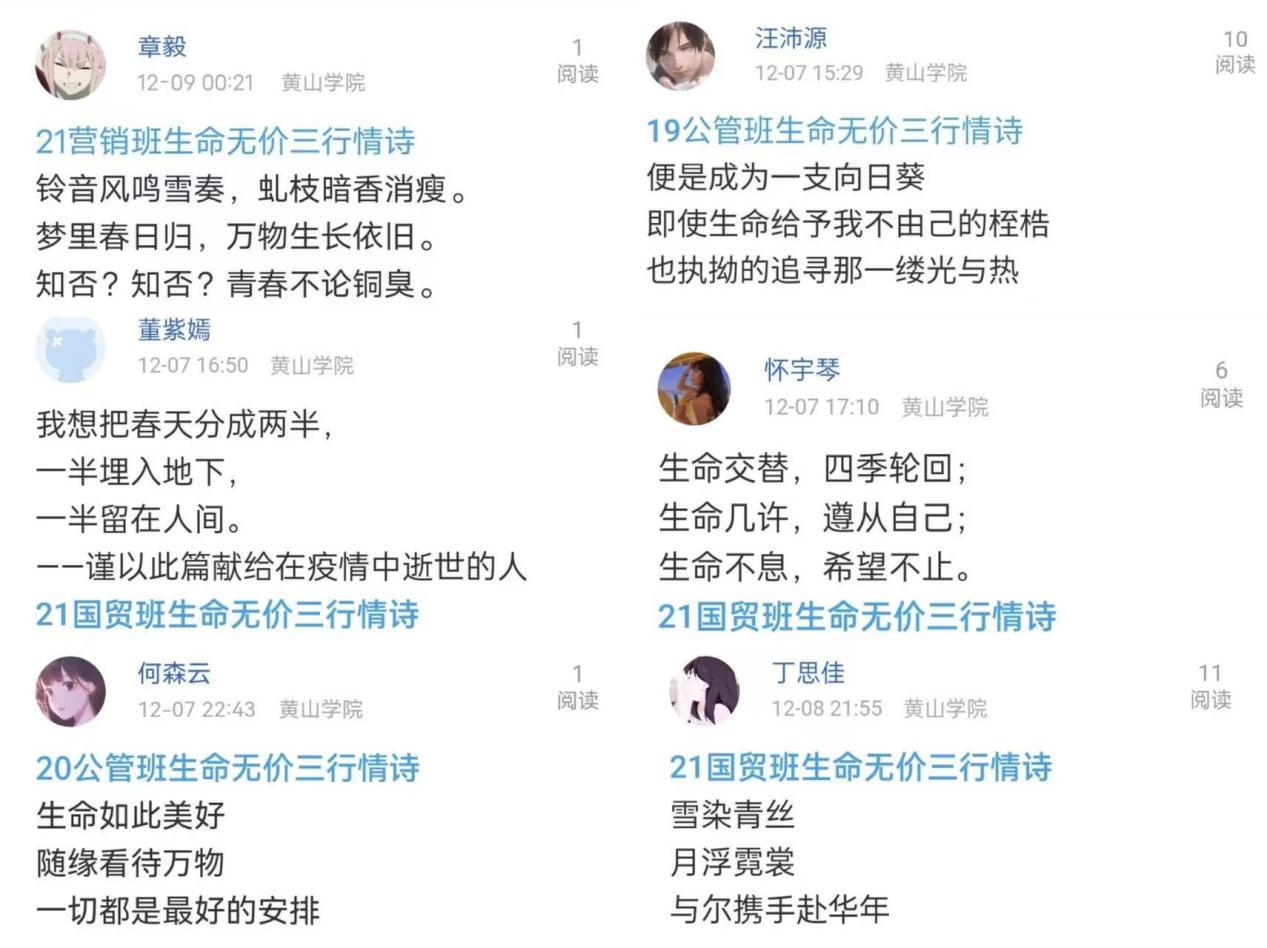 6776永利集团于2021年12月8日-15日通过易班平台组织开展心理健康活动之“生命无价”三行诗歌创作。