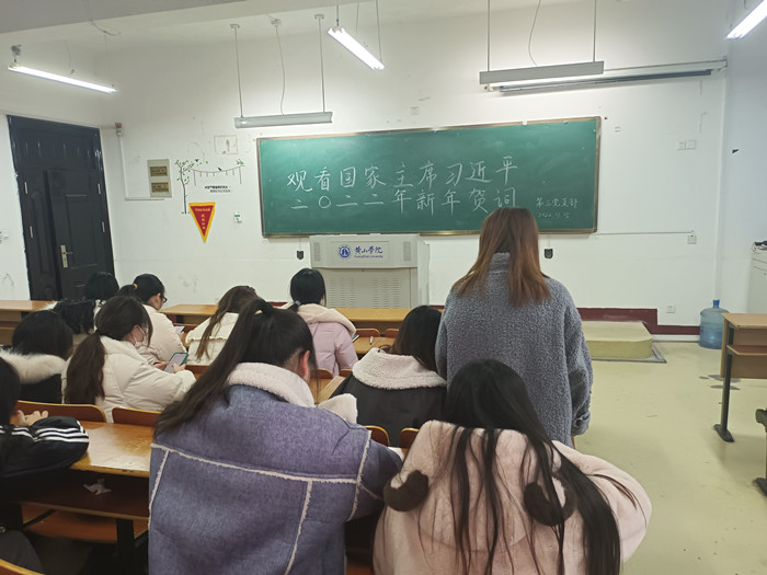 1月5日,6776永利集团学生第三党支部通过集中观看的方式,组织了支部全体党员在横江校区1203教室观看了国家主席发表习近平二〇二二年新年贺词。