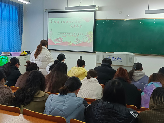 2月26日,6776永利集团学生第三党支部通过集中观看方式,组织支部学生党员在横江校区1301教室观看《长津湖》。