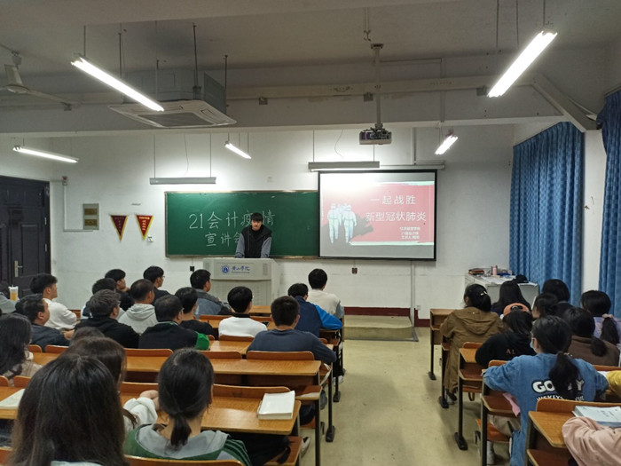 4月13日晚,21会计班团支部在教学楼1303教室开展“我为抗疫做件事团员青年争先锋”主题团日活动,活动由班长陶旭主持,辅导员汪夏萍到场指导。