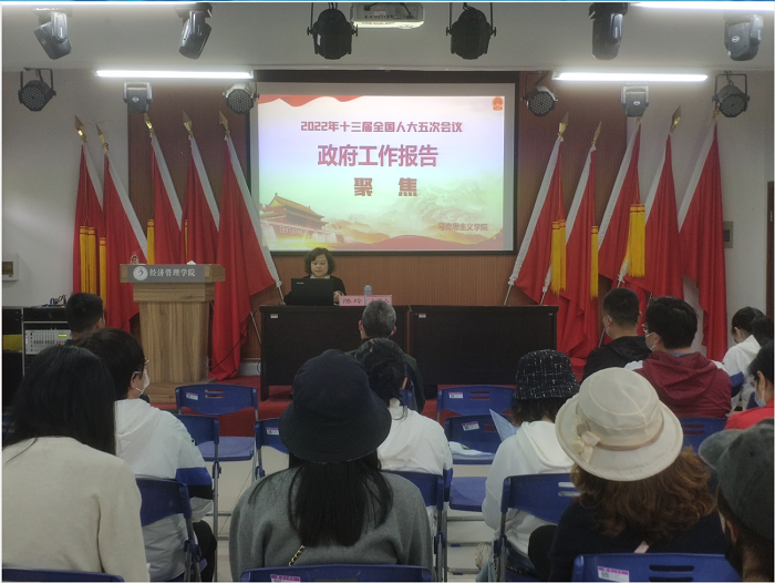 活动中全体党员首先倾听了马克思主义学院陈玲博士做的报告会,从2021年工作回顾、2022年经济社会发展总体要求和政策取向、2022年政府工作任务三个方面学习了2022年全国“两会”精神。