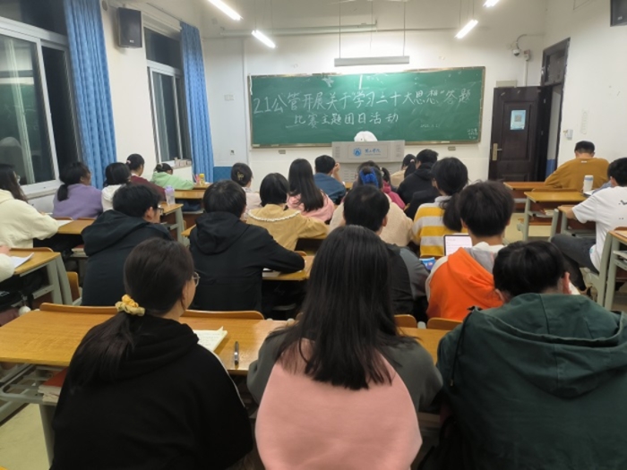 为深入学习贯彻党的二十大精神,11月21日晚,21公管班团支部在1207教室组织开展“学习党的二十大精神答题比赛”的主题团日活动,团支部全体团员参加本次活动。