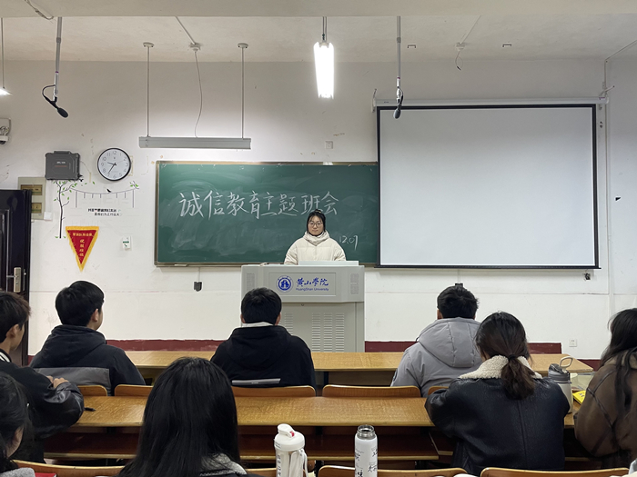 12月7日,2020级财务管理班于横江校区1203教室开展了以“诚信教育”为主题的班会,本次班会由学习委员李鑫主持,辅导员李斌到场指导。