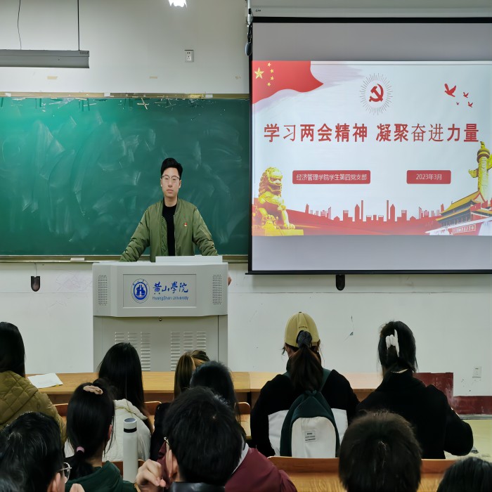 2023年3月21日,6776永利集团学生第四党支部在横江校区教学楼1103教室开展“学习两会精神,凝聚奋进力量”主题党日活动,本次主题活动由党支部书记吴伟航主持。