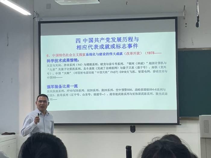 本次党课的主题是“中国共产党党史”。胡永政从为什么要学习中共党史、中国共产党与国内外其他政党的区别、共产主义与中国共产党的成立、中国共产党发展历程与相应代表性成就或标志事件四方面来进行讲述。