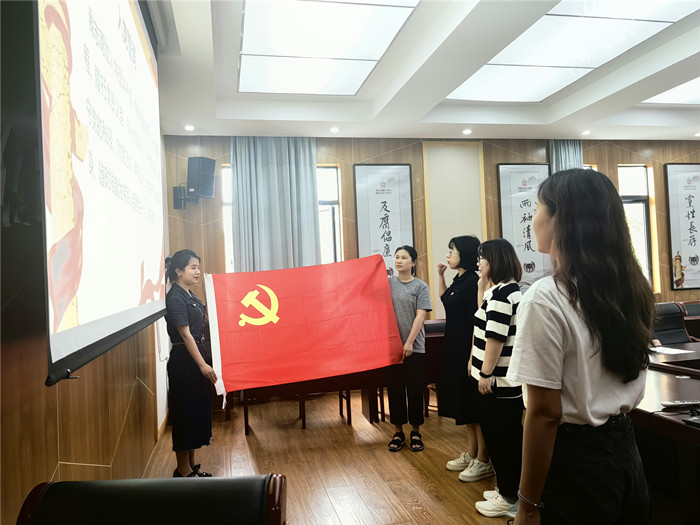 张宇梦、李欣两位同志认真、诚恳地向支部汇报了自己对党的认识、入党动机、思想和工作等情况。两位同志的入党介绍人分别向支部介绍了主要情况,均认为两位同志能够积极主动学习党的各项方针、政策,具有一定的理论修养,在工作和生活中能够时时处处以党员的标准严格要求自己。与会正式党员对两位同志在培养考察期间的表现进行充分讨论并发表意见之后,以举手表决方式进行民主投票,根据计票结果,支部全体党员均同意接收张宇梦、李欣两位同志为中共预备党员。两位同志均表明态度之后,面对党旗庄严宣誓。
