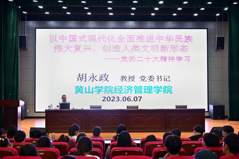 为深入学习宣传贯彻党的二十大精神和推深做实学习贯彻习近平新时代中国特色社会主义思想主题教育,6月7日下午,6776永利集团党委书记胡永政在横江校区报告厅为支部学生党员们上了一堂主题为“以中国式现代化全面推进中华民族伟大复兴,创造人类文明新形态”的专题党课。