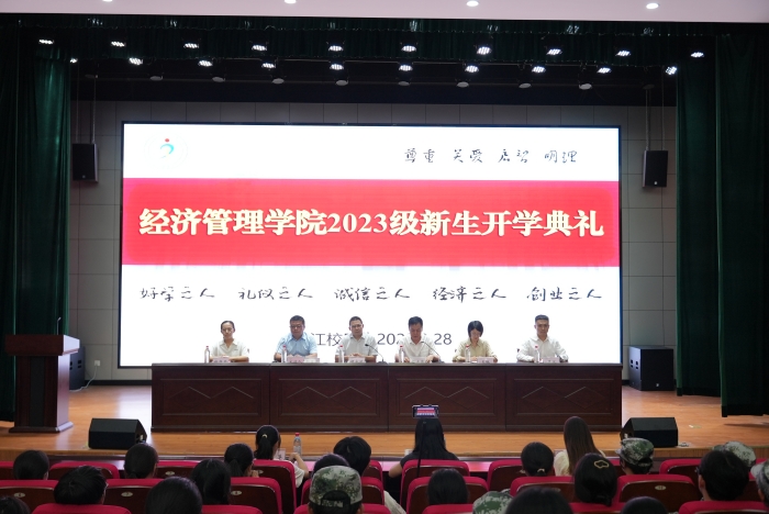 赵士德致欢迎词。他介绍了学院办学历史、办学特色和突出的育人成果,勉励新生既要培养独立精神,又要锻炼协作能力;既要做知识的传承者,又要做思想的创造者、分享者。要求真学问,学做真人,严于律己、宽以待人,求同存异、取长补短,兼容并包、相互成就;始终胸怀敬畏之心、感恩之心;踏踏实实学习,本本分分做人,无论什么时候、走到哪里,都要有个经管人的样子。他提醒同学们要炼就好身体,努力成长为“有社会责任、有创新精神、有专业知识、有实践能力、有健康身心”的社会主义建设者和接班人。