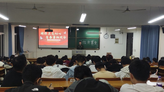 线下开展退伍学生爱国主义分享会暨征兵宣讲会活动,此次活动由我院退伍学生22营销对口班张建和同学主讲,一百余名学生参加。张建和分享了自己的入伍生活和成长经历,有严肃的纪律、严格的训练,也有生活的逸事、战友的感情。在场同学们听得十分认真,分享结束后积极提问,表达了对参军的热情和憧憬。通过活动引导青年学生将爱国主义情怀根植在心中,将青春理想融入国家发展,让个人志向与祖国需要高度契合,争做有理想、敢担当、能吃苦、肯奋斗的新时代好青年。