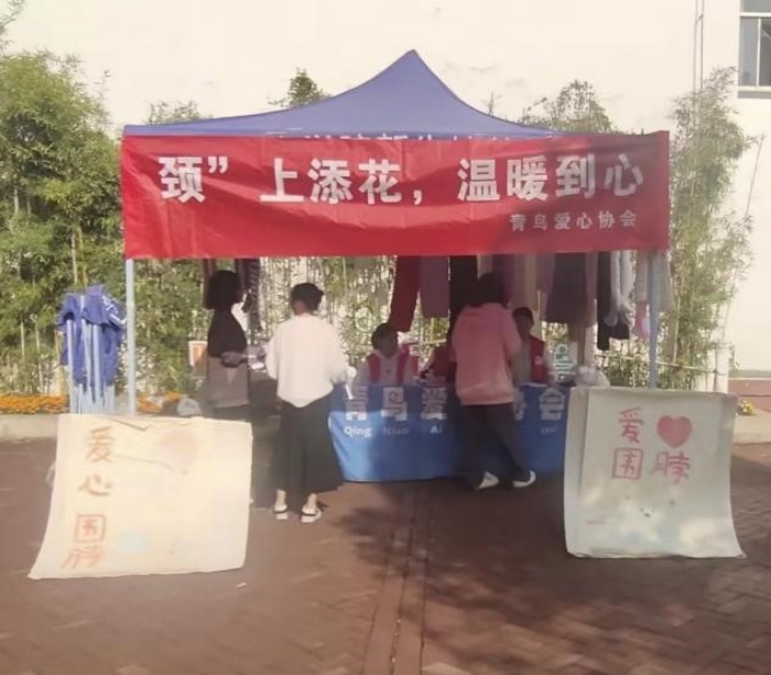 在10月20日至10月29日学生间相互帮助,以围巾做纽带,系紧学生之间关系。看这同学们一针一线织出围脖,想象着带着小朋友的身上,他们是多么开心,爱心围脖的意义不在于金钱上的帮助,而是锻炼同学们的动手能力和献出自己的爱心与行动。在志愿活动中我们能被围脖所传输的力量深深感染。