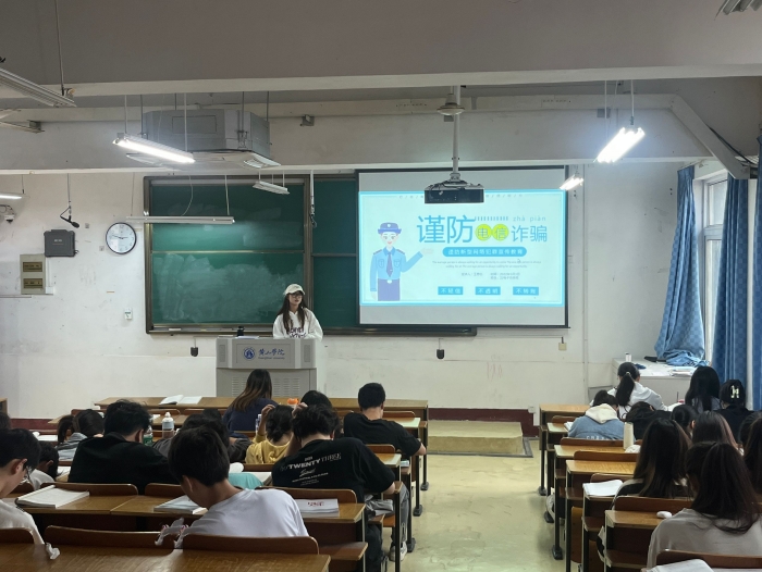 2023年5月3日,22电商班在横江校区1201教室开展“时刻绷紧防范之弦,谨防新型电信诈骗”主题安全宣讲活动,王思怡运用法律法规、典型案例讲述有关电信诈骗的知识,班级同学以寝室为单位制作防电信诈骗手抄报。此次活动进一步增强大学生识别防范电信网络诈骗的意识能力,切实保障学生的财产安全,创建平安和谐的校园环境。