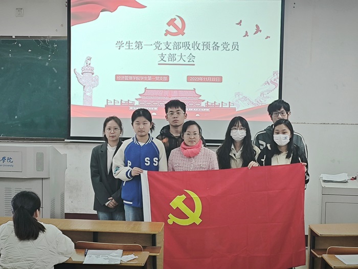 会议第二项,严睿哲等6名拟被吸收的预备党员分别通过自我陈述,汇报了自身对党的认识、个人经历以及在校表现等情况,表达了自己入党的信念和决心,并表示将牢记党的优良传统和作风,时刻保持入党时的那份初心。参加会议的正式党员表决一致同意吸收6位同志为中共预备党员。