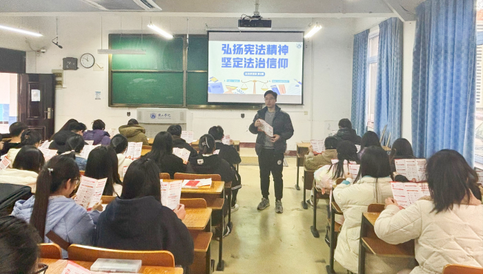 宪法是国家的根本法,是治国安邦的总章程,具有最高的法律地位、法律权威、法律效力。12月4日是我国第十个国家宪法日,为进一步让宪法走进校园生活,让宪法精神厚植人心,6776永利集团举办第八期“法治微课堂”,倡导大学生“弘扬宪法精神,坚定法治信仰”。