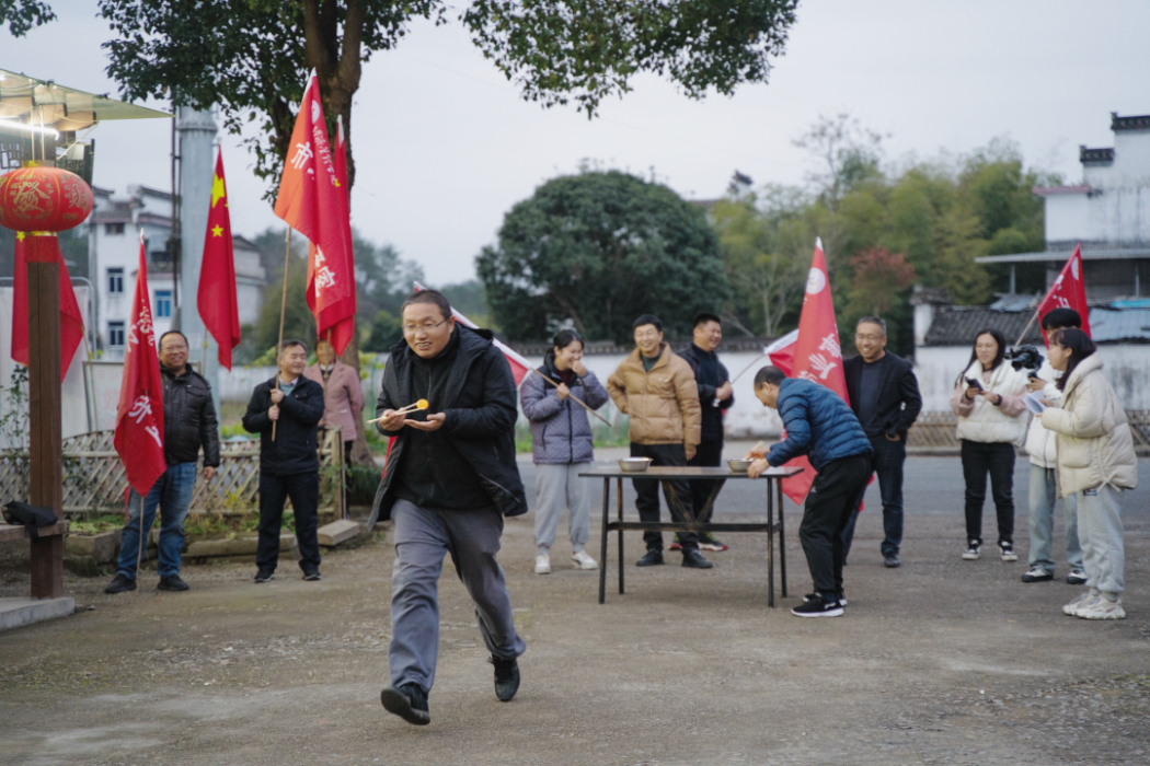 团建活动共有黄萝尖古道徒步比赛和“筷人一步”接力运球比赛两个环节。黄萝尖古道徒步比赛从红色革命根据地小练村出发,到达黄萝尖瞭望哨,全长大约4公里。在曲折蜿蜒的山路上,全体参赛人员精神抖擞、意气风发、奋勇争先,充分展现了学院职工众奋发向上的精神风貌和健康快乐的生活态度。“筷人一步”接力运球比赛以教研室为单位进行分组,每组队员采用接力的方式用筷子把盆里的乒乓球夹起,以最快、最稳的方式夹到指定的盆中,两分钟内夹到的球最多者获得胜利。整个比赛现场既紧张激烈,又妙趣横生,现场摇旗呐喊,加油喝彩声不断,直到比赛项目结束,所有老师仍然兴致勃勃,意犹未尽。