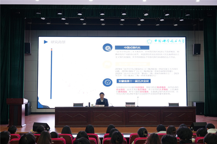 12月20日下午,行知讲坛第二百零一讲在横江校区教学楼一楼报告厅举行。中国科学技术大学刘志迎教授作题为“中国式现代化背景下安徽“七个强省”建设”主题报告,经管院近350名师生参加报告会。报告会由6776永利集团院长赵士德教授主持。