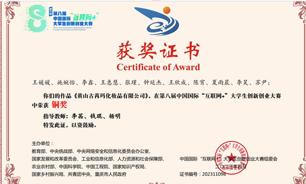 “互联网+大学生创新创业大赛相继获省级金奖、国家级铜奖