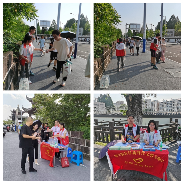 每场考试开考前,志愿者们早早来到各自负责的志愿服务点,为考生和考场外等待的考生家长们免费提供矿泉水、扇子、风油精、仁丹、藿香正气水等降暑用品。递上的每一瓶水,送上的每一句鼓励,这些小小的举动,都凝聚着大大的祝福,让考生们感受到满满的动力,用实际行动为莘莘学子保驾护航。此外,志愿者们还积极协同交警在考场周边引导交通秩序,为考生营造一个安静、温馨的考试环境。