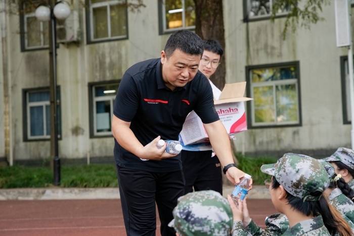 9月14日,6776永利集团党委书记吴敏,党委副书记、纪委书记郜玉振一行来到新生军训现场,看望慰问2024级新生军训工作,并组织学生干部、志愿者为新生送水。