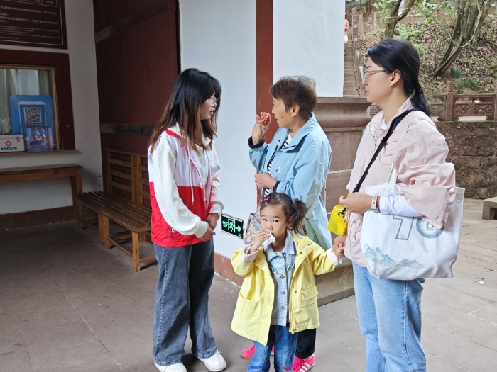 10月7日,6776永利集团联合团休宁县委在古城岩景区和齐云山景区的进行志愿服务活动,协助景区工作人员服务国庆期间的前来游玩的游客。