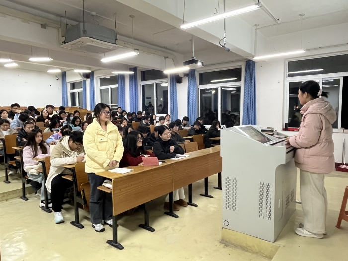 分享会上,崔凤同学以“向下扎根,向上生长”为主线,围绕“学习方法、竞赛志愿、体育活动、心态成长”四个维度展开讲述,分享了自己在大学期间的全面成长路径。在学习方面,她提出“努力专注地学,努力专注地玩”,强调自我的学习能力与资源的利用,并分享了提高绩点的具体策略。在实践领域,崔凤同学累计志愿服务超过260小时,积极参加各类专业竞赛。她结合自身经历,生动阐释了如何平衡学习与生活、如何在挑战中锤炼心态,展现了新时代青年“有理想、肯奋斗、敢担当”的精神风貌。在互动环节中,同学们围绕期末复习、竞赛准备等实际问题与崔凤学姐进行交流。同学纷纷表示:“学姐的分享真实、亲切、有用,激发了我们对大学生活进行主动规划和深度探索的动力。”