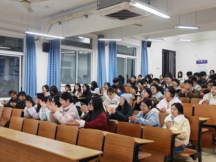 分享会上,孙浩以“初心、真心、决心”为主线,讲述自己的青春成长故事。他结合自身从入党积极分子到即将转正的思想淬炼之路、小岗村“三下乡”实践经历、从院易班干事逐步成长为学生社区党支部委员的服务历程,向同学们分享了在实践中获得的真切感悟。同时,结合自身获评国家奖学金、在“互联网+”等各类竞赛中屡获佳绩的奋斗经验,孙浩为同学们提出了具体可行的建议。他鼓励学弟学妹们要勇于尝试、不惧挑战,积极参与志愿服务和社会实践活动,将个人理想融入时代发展,在服务奉献中践行初心,在拼搏进取中实现成长。同学们纷纷表示:“学长的分享让我深刻领悟到青春的意义在于奋斗的真谛,让我对未来的学习与生活有了更清晰的规划。”